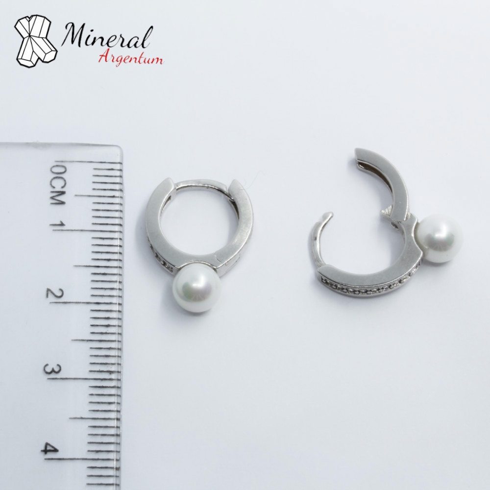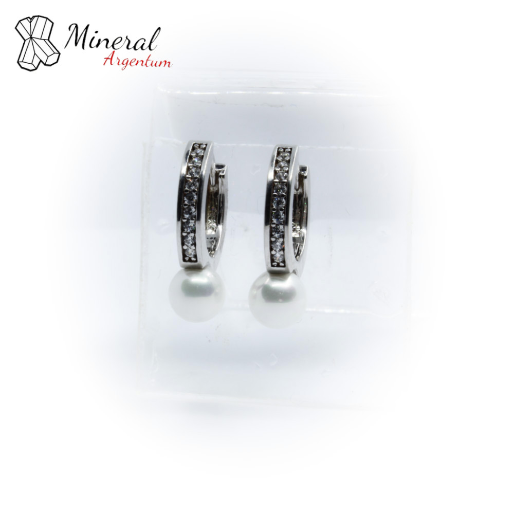 Stříbrné náušnice dámské AG 925/1000-perla říční, zirkon, zapínání do kroužku