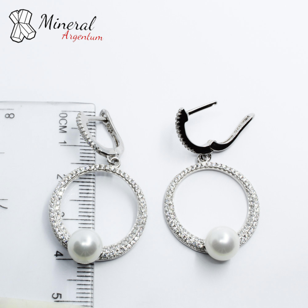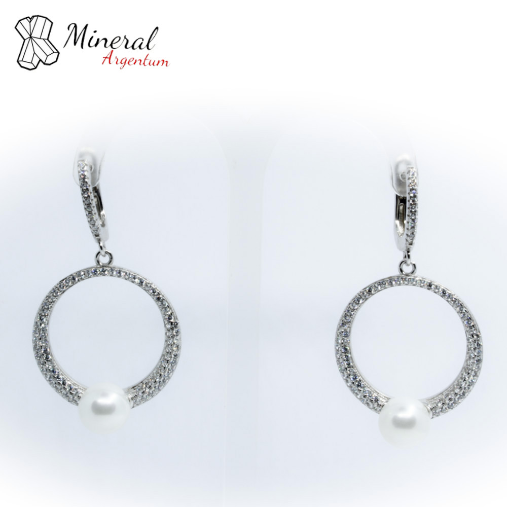 Stříbrné náušnice dámské AG 925/1000-perla říční, zirkon, zapínání vidlice