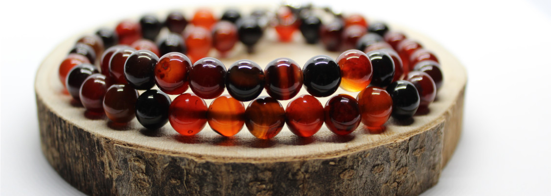 Náramek je z následujících minerálů: Avanturín, Tygří oko, Karneol, Růženín.